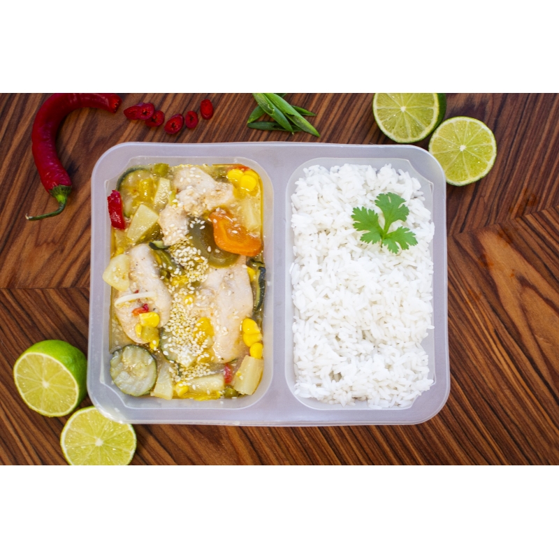 Składniki: ryż jaśminowy 34,3% [ryż jaśminowy, sól], warzywa w sosie 23% [papryka kolorowa trio, marchew, cukinia, kukurydza konserwowa (kukurydza, woda, cukier, sól), ananas (ananas, woda, cukier, regulator kwasowości: kwas cytrynowy), olej rzepakowy, pieprz czarny, sól], kurczak sweet chili 22,9% [filet z piersi kurczaka, cukier brązowy, olej rzepakowy, sos chili słodki (cukier, woda, chili, czosnek, sól, modyfikowana skrobia kukurydziana, regulator kwasowości: kwas octowy), ocet ryżowy (woda, ryż), sok z cytryny, puree z imbiru (imbir, woda, sól, olej słonecznikowy, kwas cytrynowy, stabilizatory: guma guar, guma ksantanowa, substancja konserwująca: sorbinian potasu), czosnek, papryka chili, sos SOJOWY jasny (woda, ziarno SOI, sól, ocet spirytusowy), pieprz czarny, sól], sos słodko-kwaśny 19,2% [bulion warzywny (marchew, SELER, pietruszka, por, sól, pieprz czarny, woda), sok ananasowy (z soku zagęszczonego), skrobia ziemniaczana, papryka chili, ocet ryżowy (woda, ryż), oliwa z oliwek, miód, czosnek, puree z imbiru (imbir, woda, sól, olej słonecznikowy, kwas cytrynowy, stabilizatory: guma guar, guma ksantanowa, substancja konserwująca: sorbinian potasu), sól], sezam 0,6% [SEZAM biały]