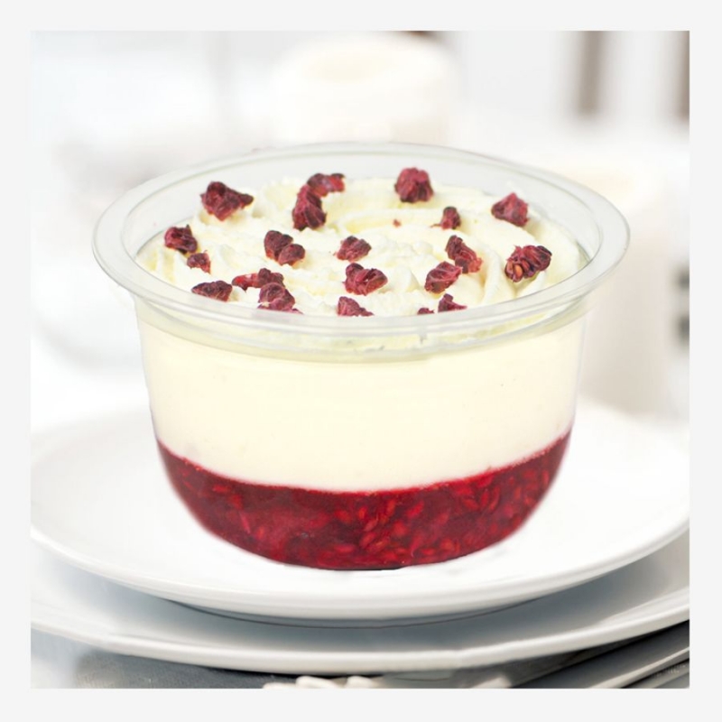 Połączenie cukierniczej pasji i dobrej jakości składników tworzy deser, który rozpieści każde podniebienie. Biała czekolada rozpuszczona w kąpieli wodnej z dodatkiem idealnie ubitej śmietany to klucz do serca każdego miłośnika słodkości. Dodatek musu malinowego nadaje niepowtarzalny owocowy smak całej kompozycji. Lekka i puszysta konsystencja zabierze nas w podniebną podróż rozkoszy.