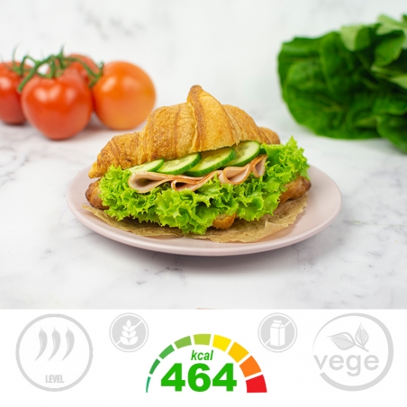CROISSANT TURKEY - z pastą z wędzonego indyka, suszonymi pomidorami, ogórkiem i sałatą