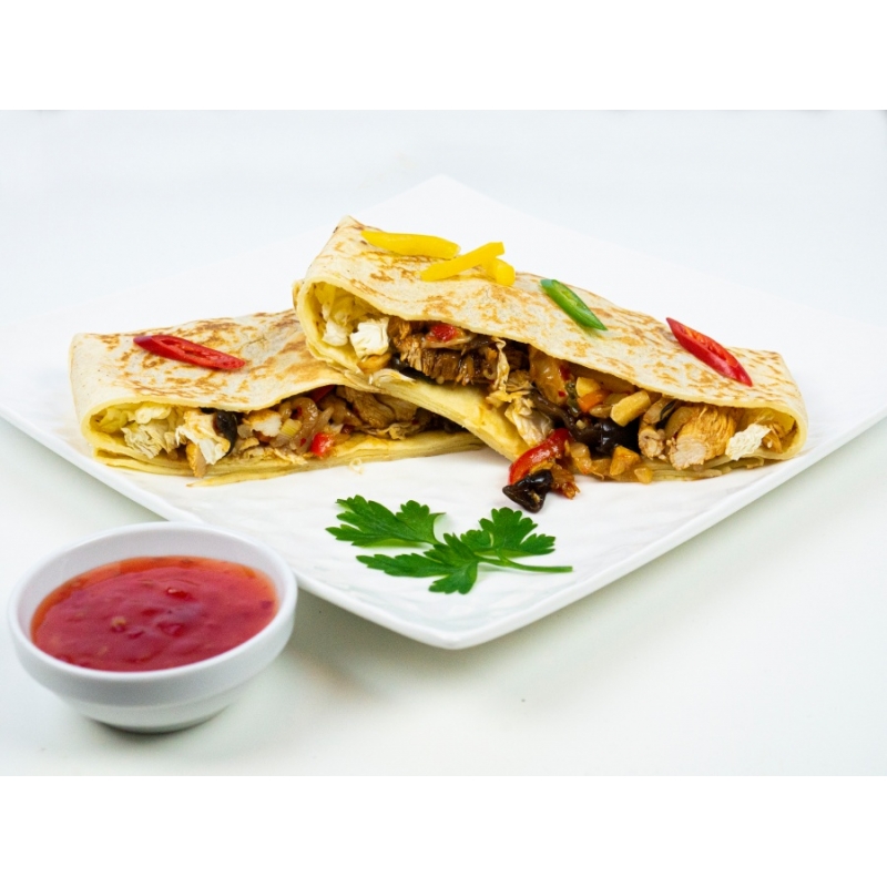 Naleśnik orientalny z kurczakiem podany z azjatycką glazurą sweet-chilli.